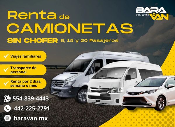 Contamos con renta de minivans, vans, SUV y camionetas.